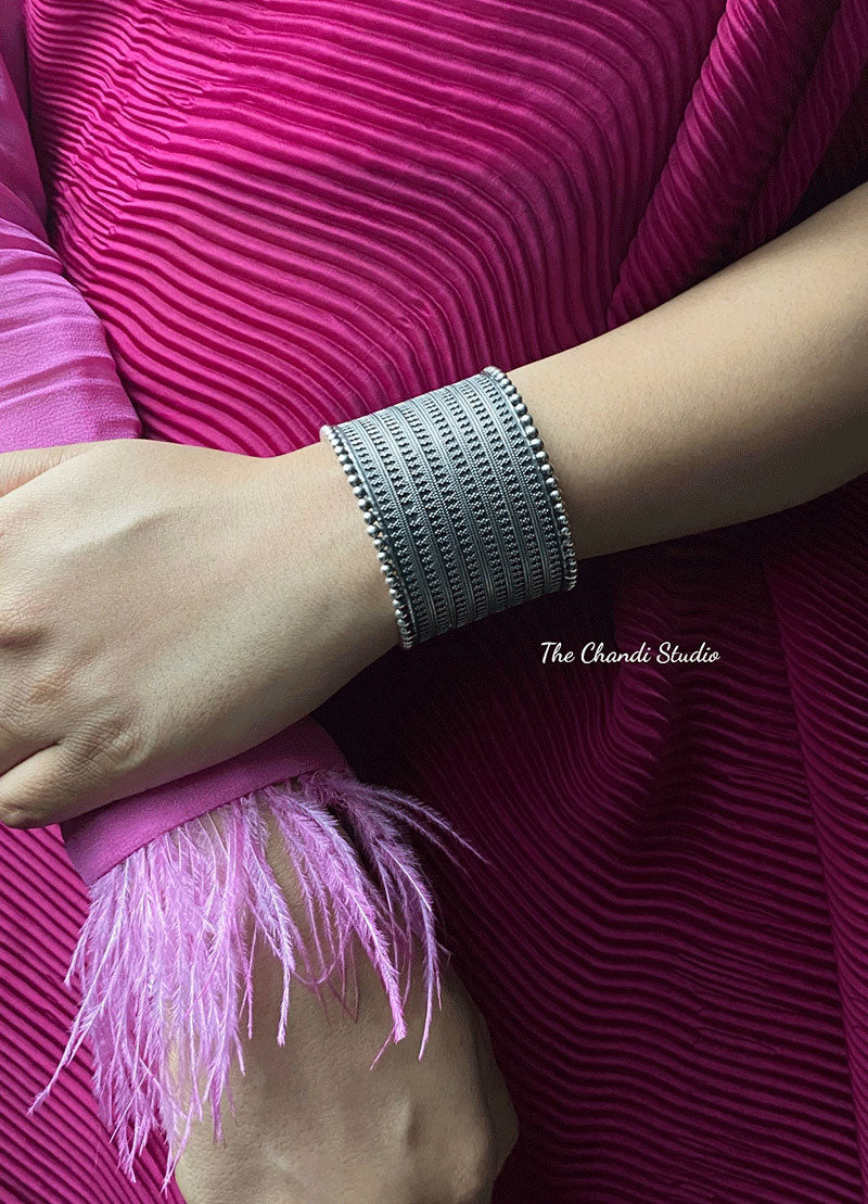 Consisting of a constellation of triangles, perfect hand carved & finished with a daana border, Nazaakat Classic Rawa Cuff with intricate rawa work is a stunner!