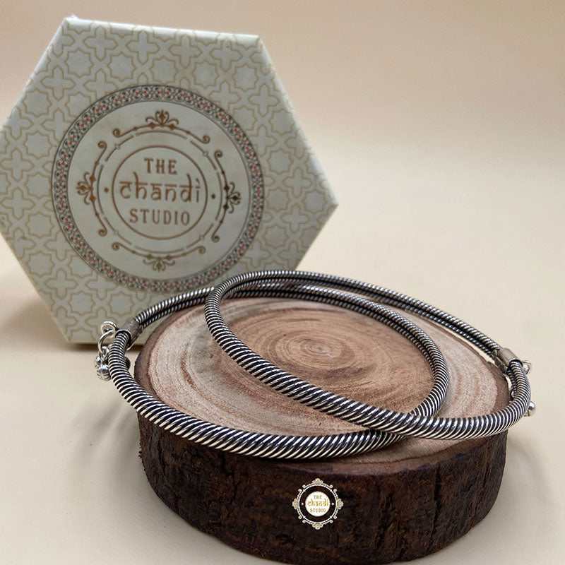 All you need to add grace to your feet is this beautiful pair of Nazaakat Textured Leg Kada Pair. Leg Kadas give a mesmerising look to the feet that have travelled long paths of survival and struggles. Get festive-ready with this gorgeous Nazaakat Textured Leg Kada, that lets your feet smile. MATERIAL: STERLING SILVER 92.5 Price mentioned is for a Pair.