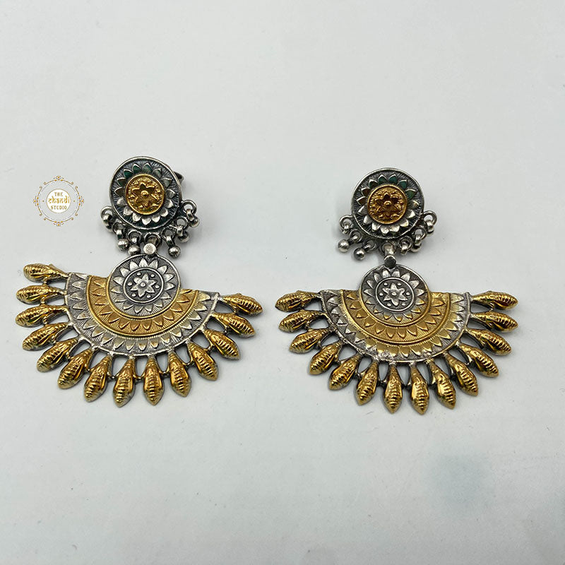 Noor Chakra D Drop Earring Dual Tone   Mooladhara Chakra defines our relationship with Mother Earth. It influences our passion, creativity, youthfulness, vitality and most importantly, our basic survival instincts. Created with eco friendly intention and made with pure material, ‘Noor Chakra Drop Earrings’ have an earthy and boho vibes associated to it. Material – Sterling Silver 925