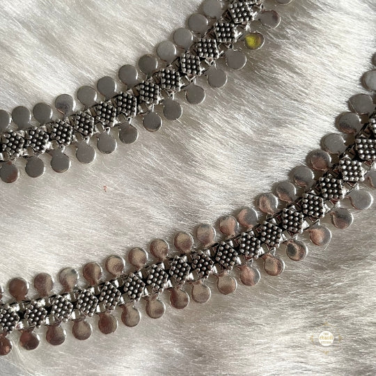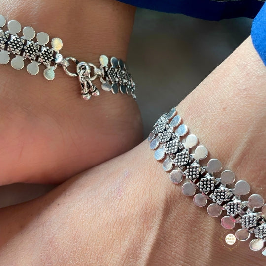 The Noor Circle of Light Anklet is a delicate and elegant piece of jewelry, designed to evoke a sense of grace and serenity. The anklet features small, circular links that form a continuous chain, symbolizing the concept of light and unity.