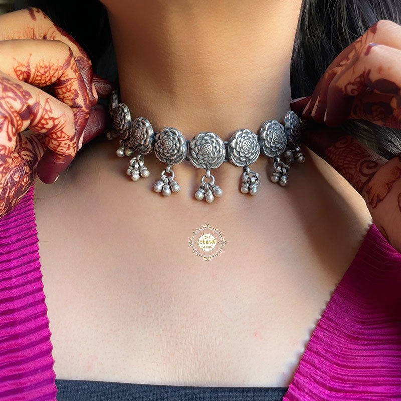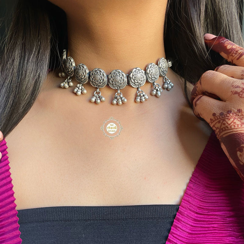 A neckpiece so playful, timeless & versatile! Whether it’s the festive season, your BFF’s mehndi or just about the daily style statement- our Noor Ghungroo Ghoomar Choker seems to fit the bill for everything. Finished with an adjustable cotton thread. MATERIAL : STERLING SILVER 92.5