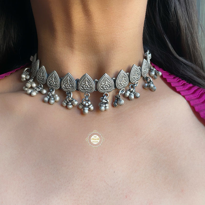 A Noor Ghungroo Heart Choker is so playful, timeless & versatile! Whether it's the festive season, your BFF’s mehendi or just about the daily style statement- our Noor Ghungroo Heart Necklace seems to fit the bill for everything. Finished with an adjustable cotton thread.