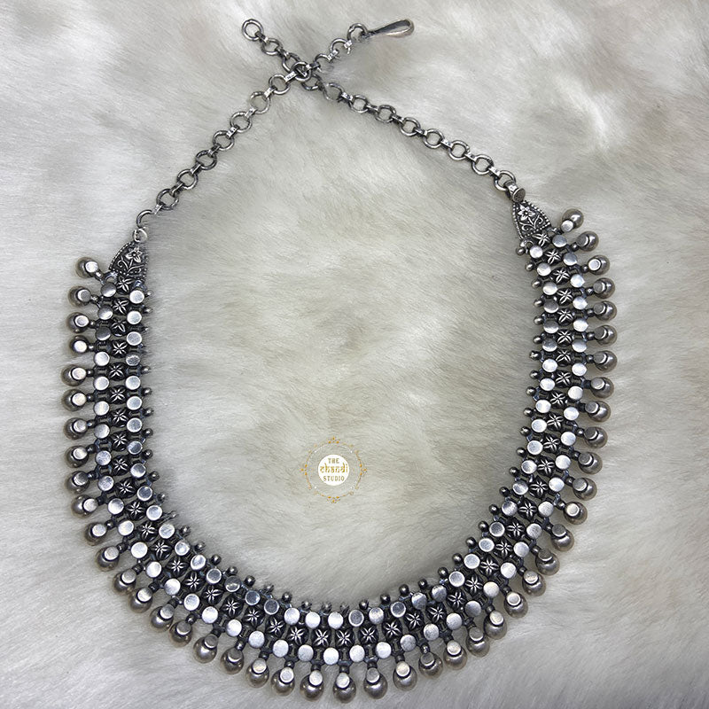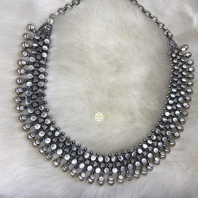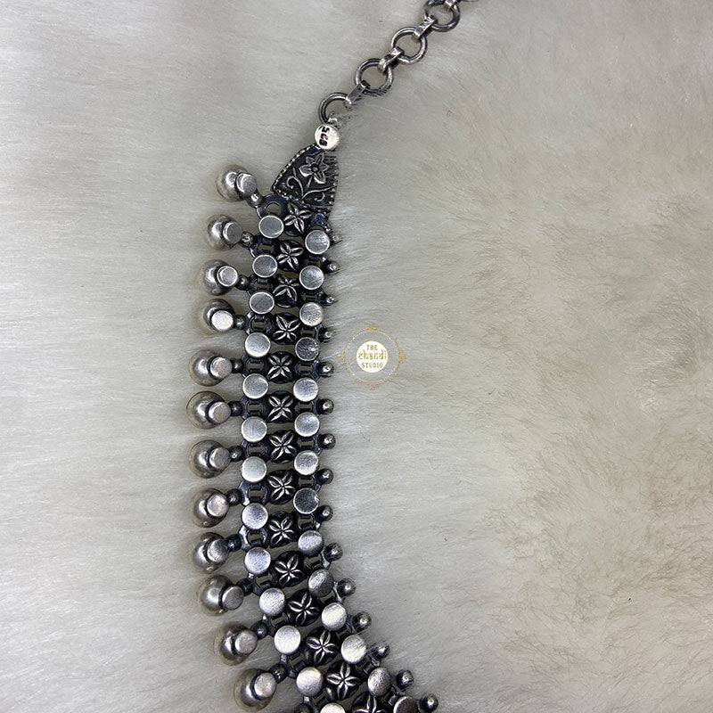 This intricately carved platonic gift is ideal for birthdays and anniversaries where you shower your loved ones with durable gifts. Manifested on silver and made in layers, this Noor Intricate Timeless Necklace is loved by women of all ages, today, tomorrow and through everything till eternity. Material: Sterling Silver 92.5 Length : 13.5 Inch Links – 4 Inch