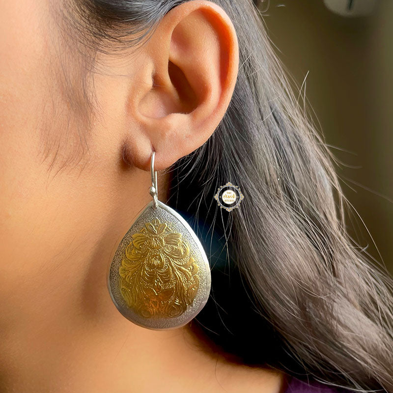 Noor Lightweight Hand Engraved Earring Dual Tone
