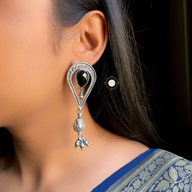 "Enhance your elegance with the exquisite 'Noor Tilak Ghungroo Earrings.' Crafted with precision and adorned with intricate details, these earrings exude timeless charm and cultural finesse. Each piece is a testament to artistry, featuring delicate ghungroos that add a melodious touch to your ensemble. This description incorporates elements to attract potential customers interested in cultural jewelry, elegance, and quality craftsmanship while also optimizing for search engines. Material – Sterling Silver 92.5%