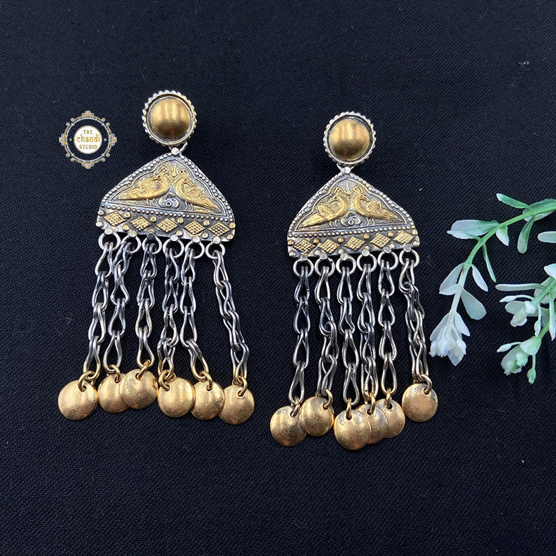 Noor Tribal Earring Dual Tone   This season, don’t mimic someone else’s style & be a diva on your own by choosing this earring with tribal feels. Unique. Festive. Tribal. Material – Sterling Silver 92.5%