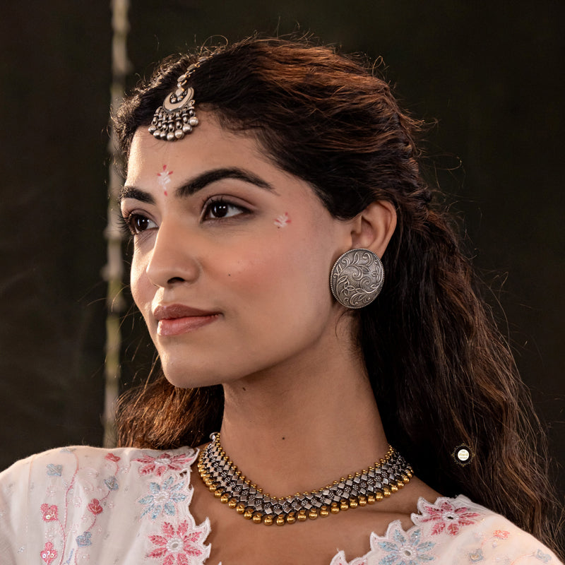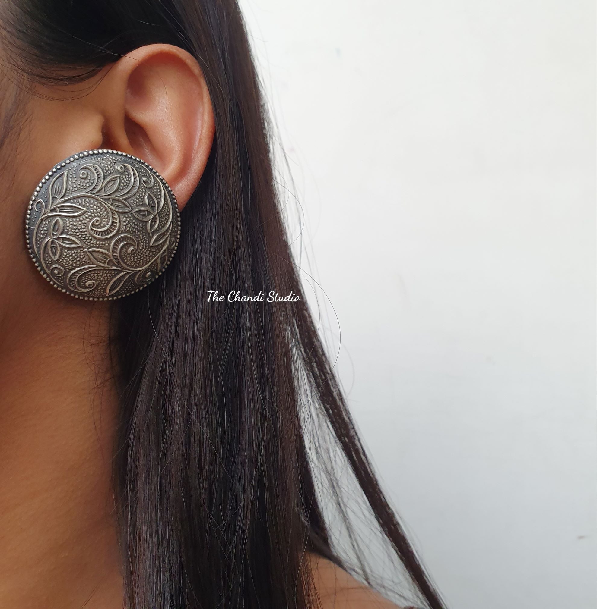 A bold one, indeed! Pair it up with your formals, western or ethnic wear and these will never fail to amaze you. Also, these are super light to carry :) Diameter - 3.8 cm Material - Sterling Silver 92.5%