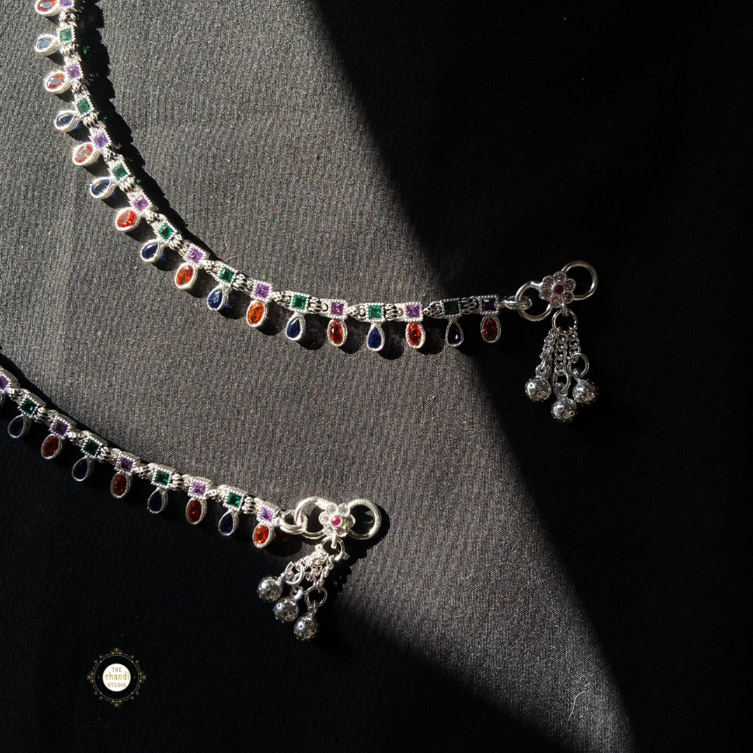 Adorn your feet with the Stone Drop anklet featuring a delicate floral design that exudes elegance. Crafted from sterling silver, this charming anklet adds a graceful touch to every step