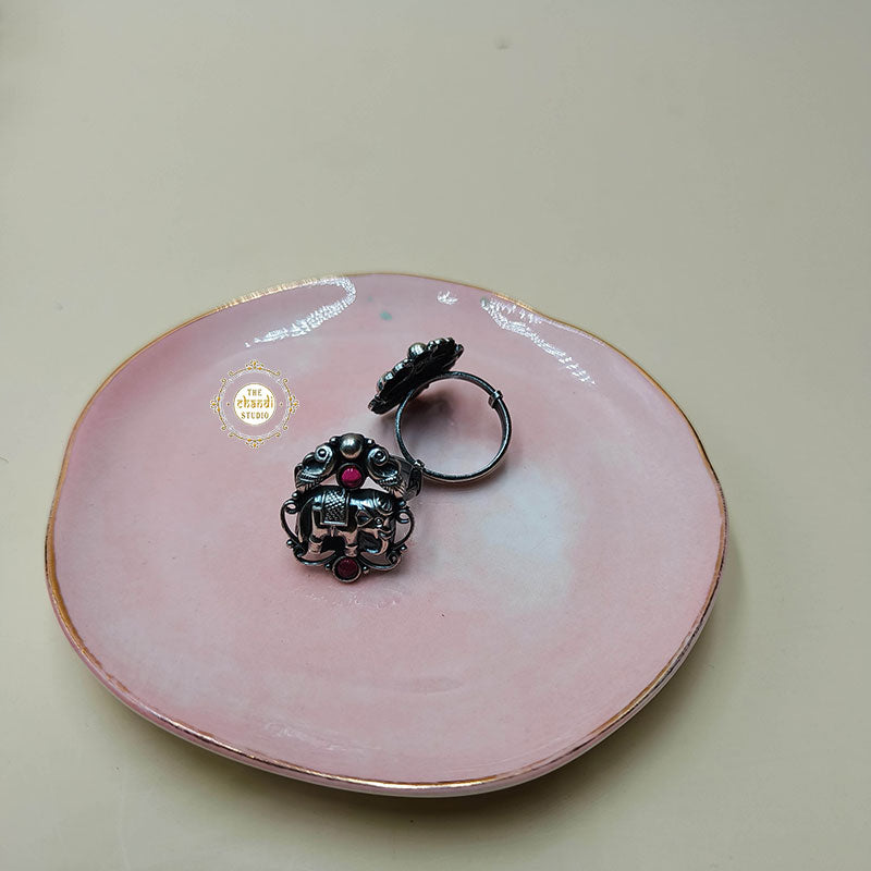 Your heart skips a beat everytime you see your fingers adorned with this beautiful Parrot Elephant Ruby Ring.