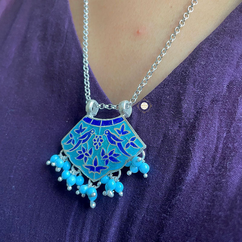 Discover elegance and charm with our exquisite Parrot Enamel Necklace Set, a testament to craftsmanship and style. Crafted with precision and finesse, this stunning set features intricately designed parrot motifs, adorned with vibrant enamel detailing that captivates the eye.Each necklace in this set is a masterpiece, meticulously created to exude sophistication and allure. The vibrant colors of the enamel seamlessly complement any attire, adding a touch of glamour to your ensemble. Whether for a formal event or a casual outing, these necklaces effortlessly elevate your look with their undeniable grace and uniqueness. Material – Sterling Silver 92.5%