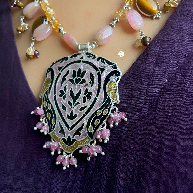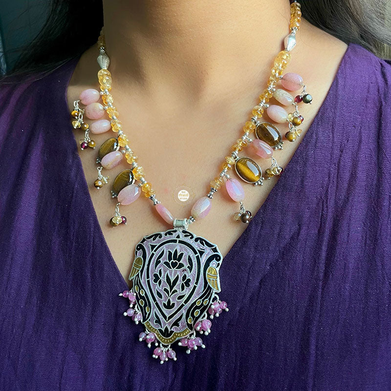 Introducing our stunning Peacock Enamel Necklace Set, an exquisite blend of elegance and sophistication. Crafted with precision and artistry, this enchanting set embodies the beauty of the peacock, renowned for its majestic allure. The necklace is accompanied by matching earrings, perfectly complementing the allure of the pendant. Add a touch of elegance to your collection today with our Peacock Enamel Necklace Set, a true testament to artistry and sophistication. Material – Sterling Silver 92.5%
