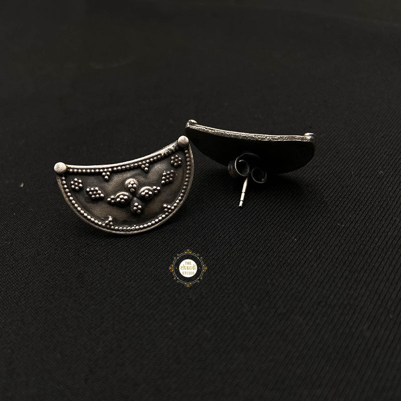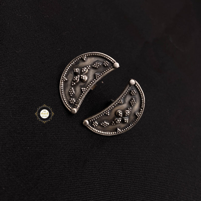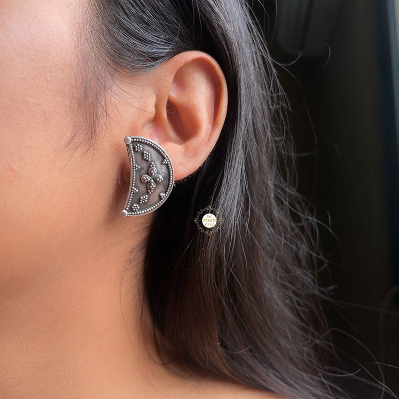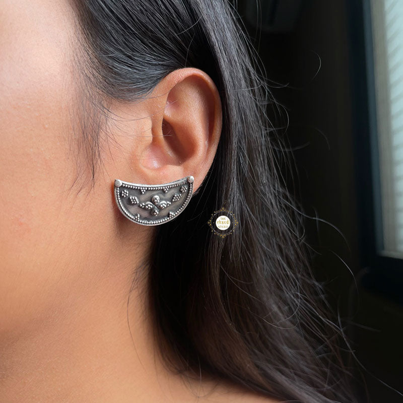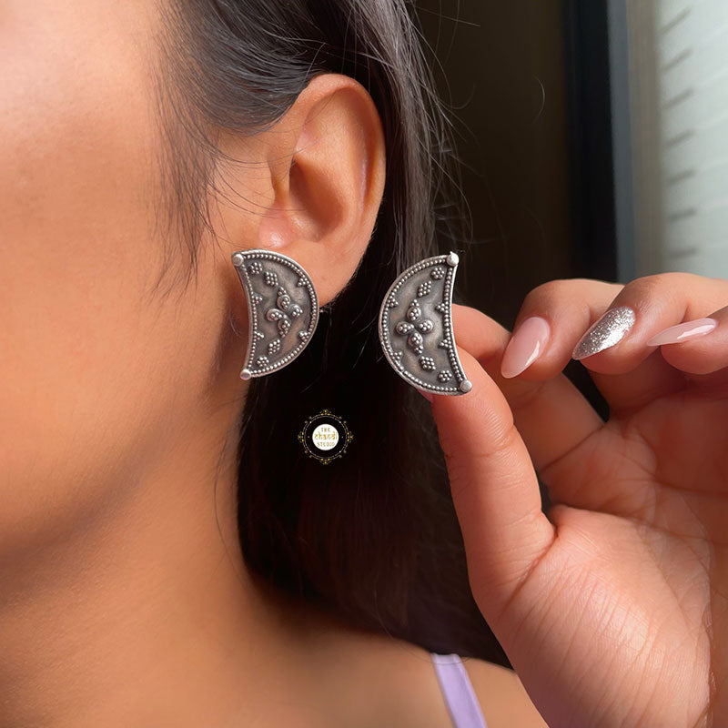 Introducing the epitome of celestial elegance: the Rawa Crescent Moon Earring. Imbued with a sense of mystique and allure, these exquisite earrings are a testament to impeccable craftsmanship and timeless design. Each earring features a delicate crescent moon motif, adorned with intricate silver detailing that shimmers with every movement.