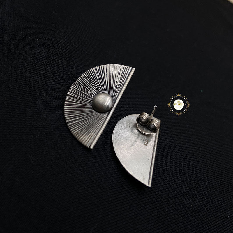 Introducing the epitome of radiant beauty: the Rawa Crescent Sunflower Earring. Inspired by the majestic sunflower, these exquisite earrings capture the essence of nature's brilliance with a touch of celestial charm. Each earring features a delicate crescent moon adorned with intricate silver detailing, crowned by a captivating sunflower motif that radiates with unparalleled elegance.