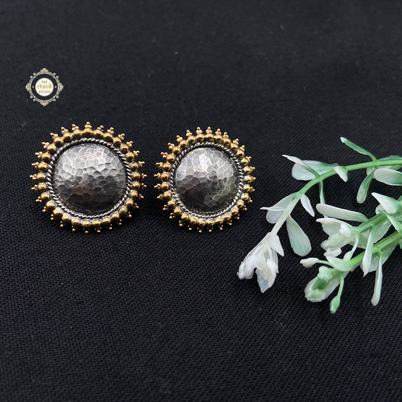 Rozana Hammered Studs Dual Tone   If you’re a sucker for dainty, barely-there jewellery! These Hammered studs are lightweight, subtle, effortless & goes with almost everything. For the days when you want to keep it minimal yet look your best! MATERIAL : STERLING SILVER 92.5