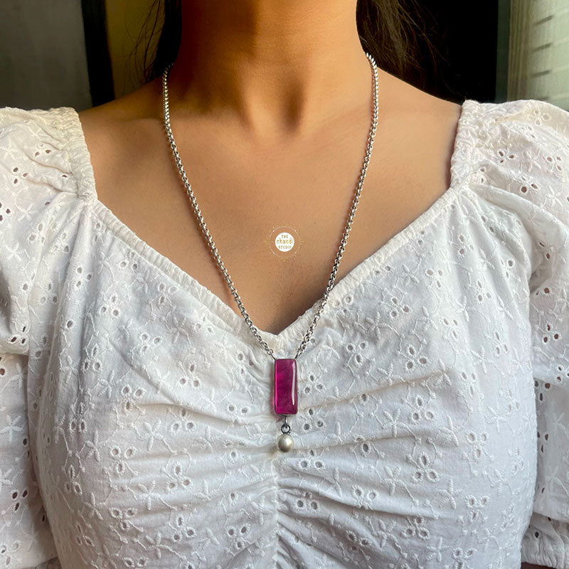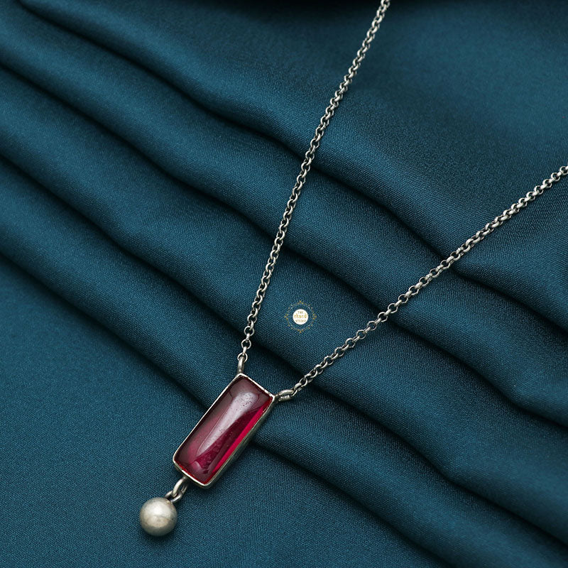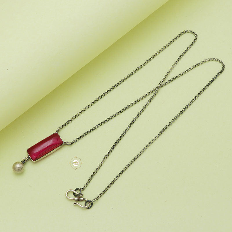 The Ruby Ball Drop Necklace is a stunning and elegant piece of jewelry. It features a lustrous ruby gemstone suspended from a delicate chain. The ruby, known for its deep red hue, adds a touch of luxury and sophistication to your neckline. The ball drop design creates a graceful and eye-catching effect as it dangles gracefully. This necklace is perfect for special occasions or for adding a pop of color and glamour to your everyday attire. With its timeless beauty and classic design, the Ruby Ball Drop Necklace is a must-have accessory for any jewelry collection.