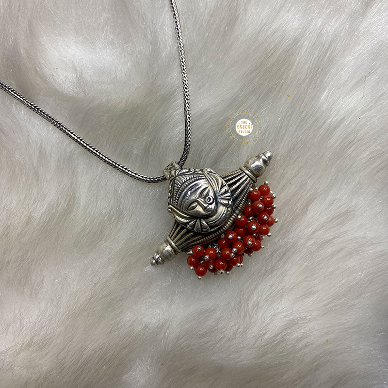 Ruhaniyat Durga Pendant A pendant crafted from sterling silver and pearls is a great way of displaying your devotion to Maa Durga. MATERIAL : STERLING SILVER 92.5 *Price mentioned is only for the pendant.
