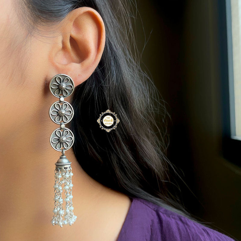 Ruhaniyat Flower Motif Pearl Jhumki