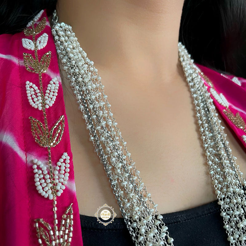 MATERIAL : STERLING SILVER 92.5 LENGTH : Chain - 28 inches (including links) Pendant - 3 inches WIDTH (Pendant) - 2.5 inches Ganesha stands for good fortune and protection and holds an irreplaceable place in everyone’s hearts. Welcome good fortune by investing in this beautifully handcrafted Ruhaniyat Lord Ganesha Hand Painted Necklace.