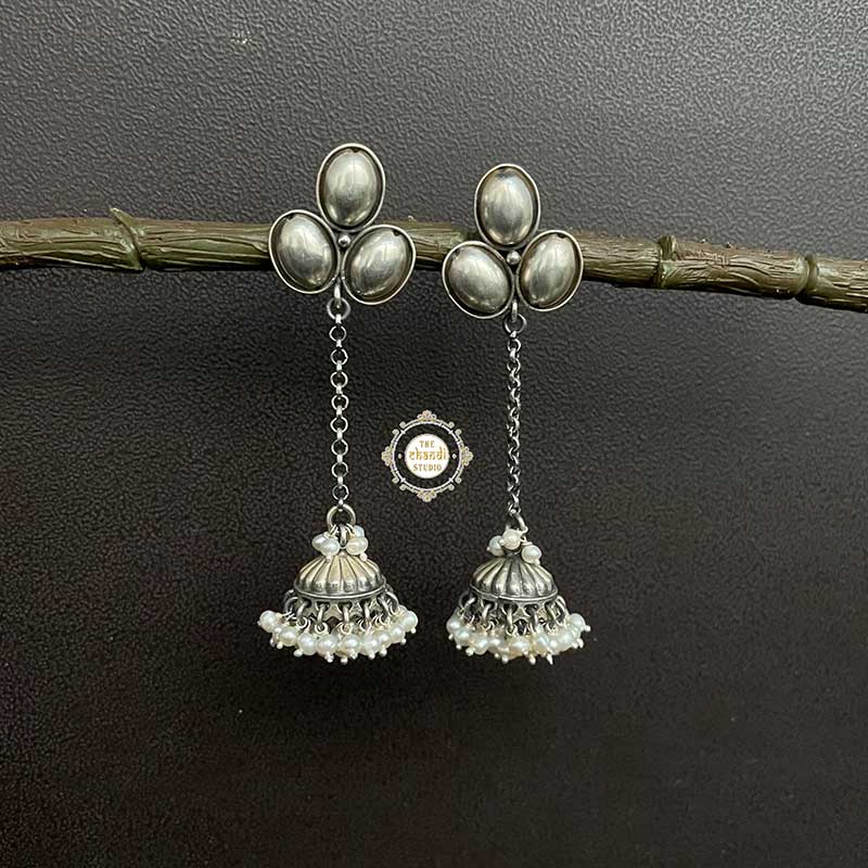 Jhumka with a twist. This one can add an element of surprise to the staidest look. It’s festive & unique 🙂 LENGTH – 8 CM WIDTH - 1.5 CM MATERIAL – STERLING SILVER 92.5%