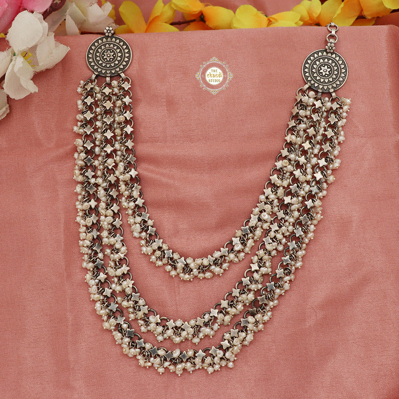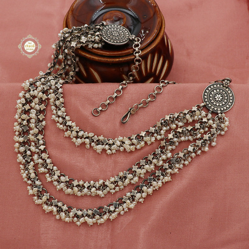 Experience classic elegance with this exquisite triple-layered pearl necklace. Each layer features lustrous pearls that add a touch of sophistication to any outfit. Perfect for formal events or a refined everyday look, its timeless design ensures you shine with grace and style.