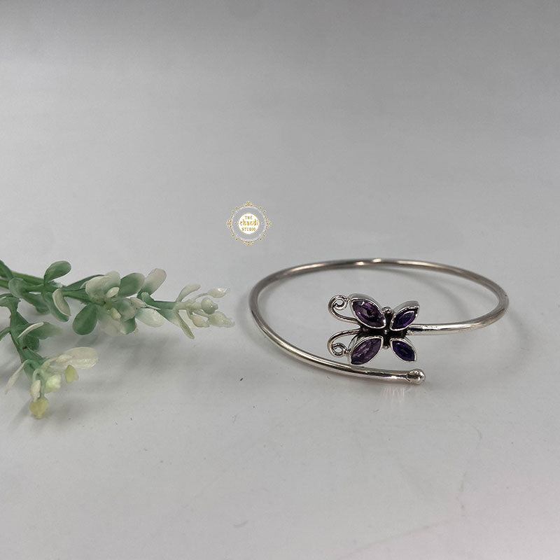 Rustic Romance Amethyst Butterfly Kada Ā  Delicately dainty, we dare anyone not to fall in love with this bracelet featuring Amethyst Stones From work to weekends & everything in between with this šŸ™‚ MATERIAL – STERLING SILVER 92.5 *Price mentioned is for a single piece.