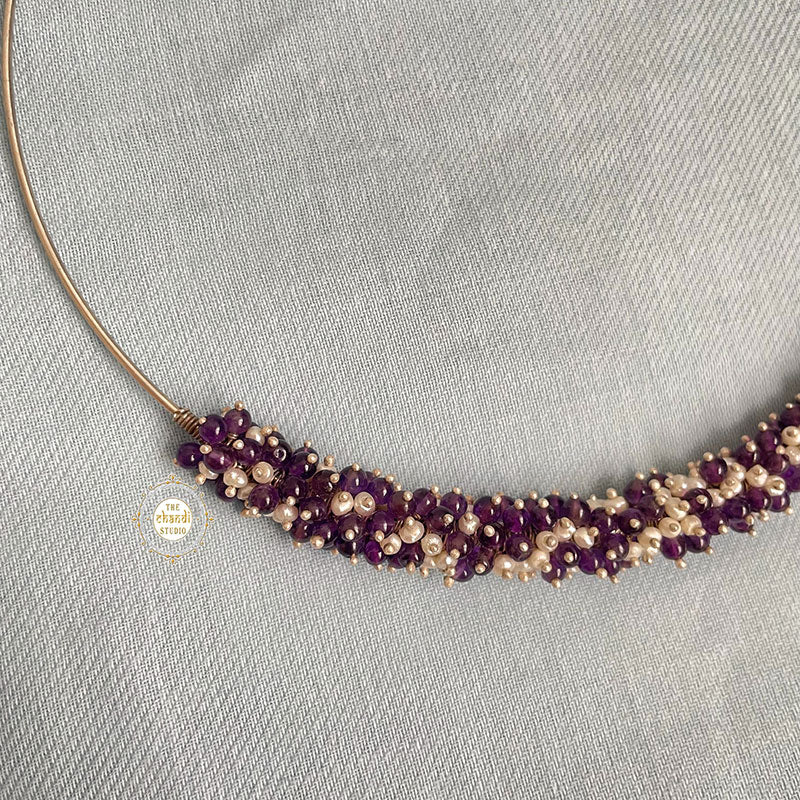 Rustic Romance Amethyst-Pearl Wire Hasli