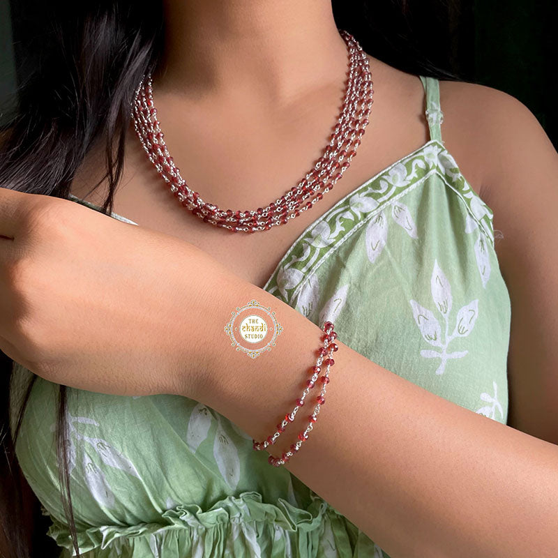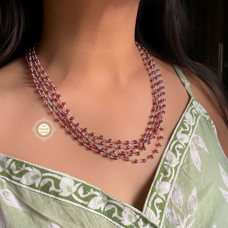 The pomegranate stone of Garnet gleams with a dark red luster that instantly stirs the soul. Radiating with warmth and the color of rich blood, Garnet is also a glorious stone for helping flush out body toxins and keep circulation strong. It’s a stone that wants to keep your blood flowing, your heart beating, and your metabolism working to the best of its ability. For those seeking a stone that will help their body absorb much-needed nutrients, Garnet is your guy. Length - 21 inches MATERIAL : STERLING SILVER 92.5