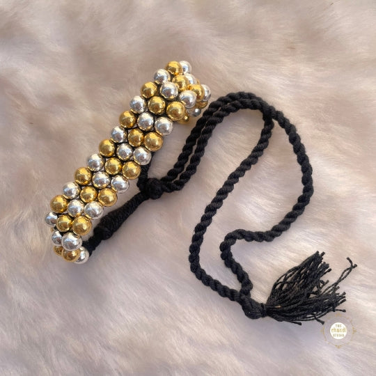 Discover elegance with the Sadabahar Dholki Ball Dual Tone Necklace. This stunning piece features intricately designed dholki balls in a chic dual-tone finish, perfect for any occasion. Lightweight and versatile, it enhances both festive and everyday outfits.