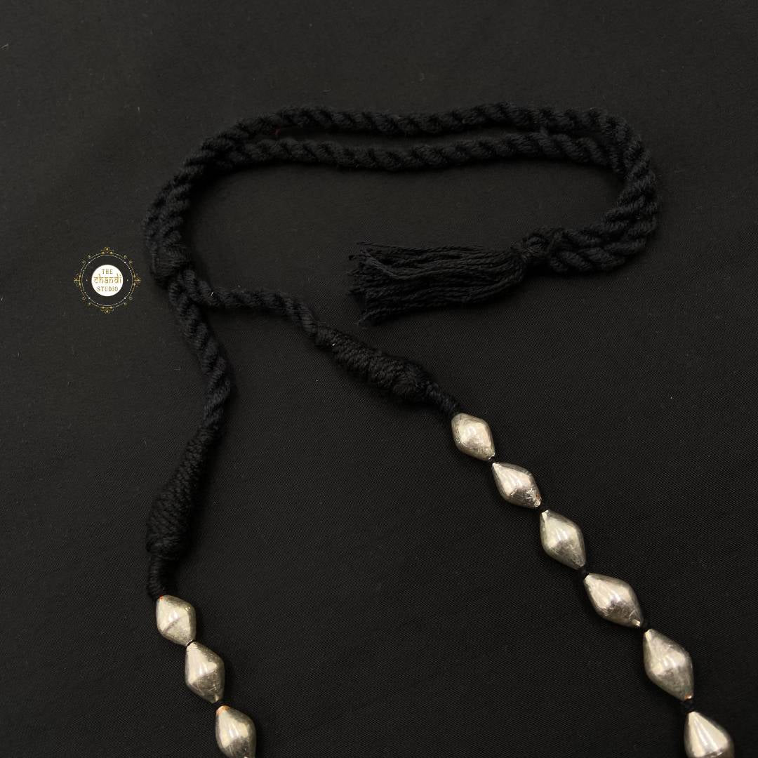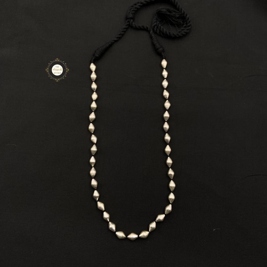 A vibrant and playful thread necklace adorned with traditional dholki beads, radiating timeless charm. The Sadabahar Dholki Bead Thread Necklace is a versatile accessory that adds a touch of joy to any ensemble, perfect for those who appreciate lively, ethnic-inspired jewelry. * MATERIAL : STERLING SILVER 92.5 Length : Minimum - 26 inches Beads Count - 35