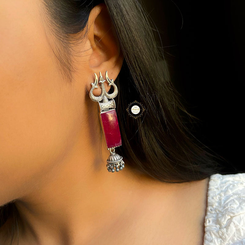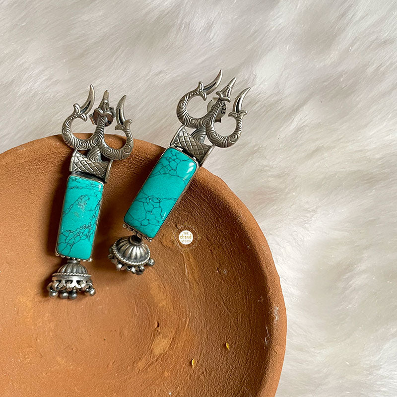 Discover the divine elegance of our Shiva Trishul Earrings! Crafted with exquisite detail and spiritual significance, these earrings encapsulate the powerful symbolism of Lord Shiva's Trishul. Embrace the sacred energy and adorn yourself with these beautifully designed Shiva Trishul Earrings, a manifestation of strength, grace, and spirituality. Elevate your style and resonate with divine symbolism effortlessly!" MATERIAL : STERLING SILVER 92.5