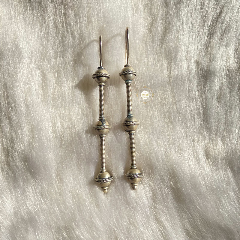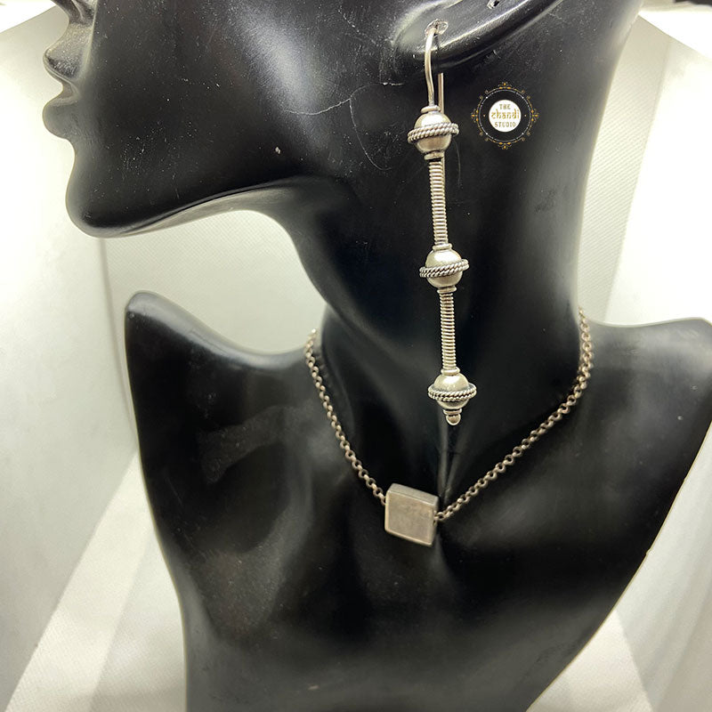 The Silver Heritage Dangler Earring showcases a striking danglers-inspired design, crafted in sterling silver with intricate detailing. Perfect for cultural events or special occasions, these earrings add a touch of vintage elegance.