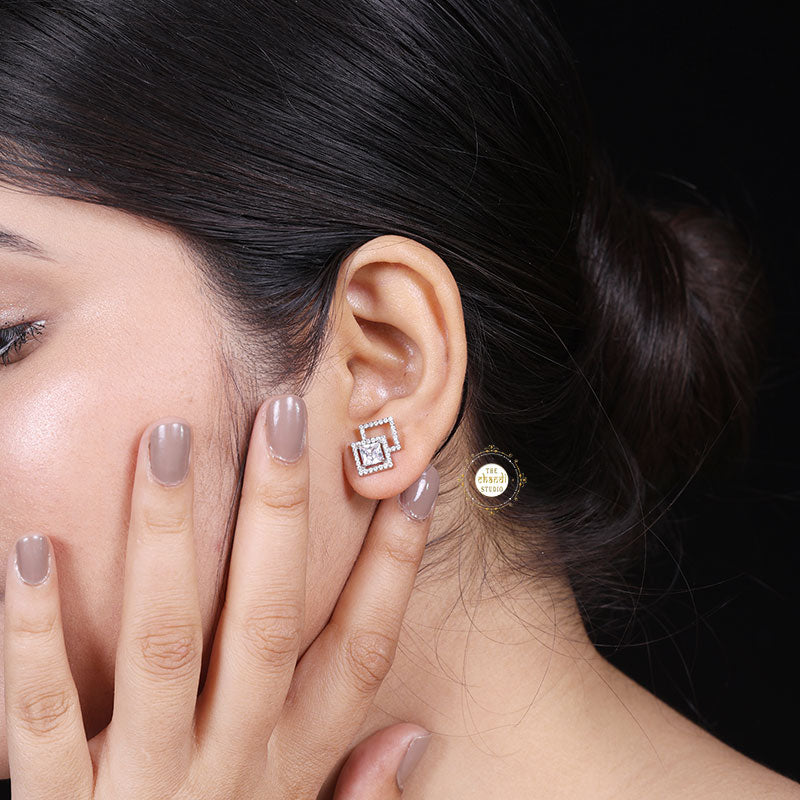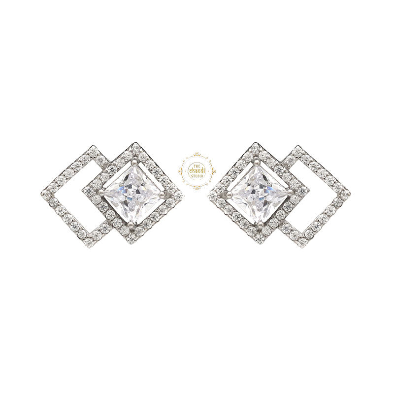 These exquisite studs feature a Double Trouble Everyday design adorned with sparkling zircons, creating a dazzling and eye-catching look that will capture hearts everywhere. * Nickle free Rhodium Polish for better finish