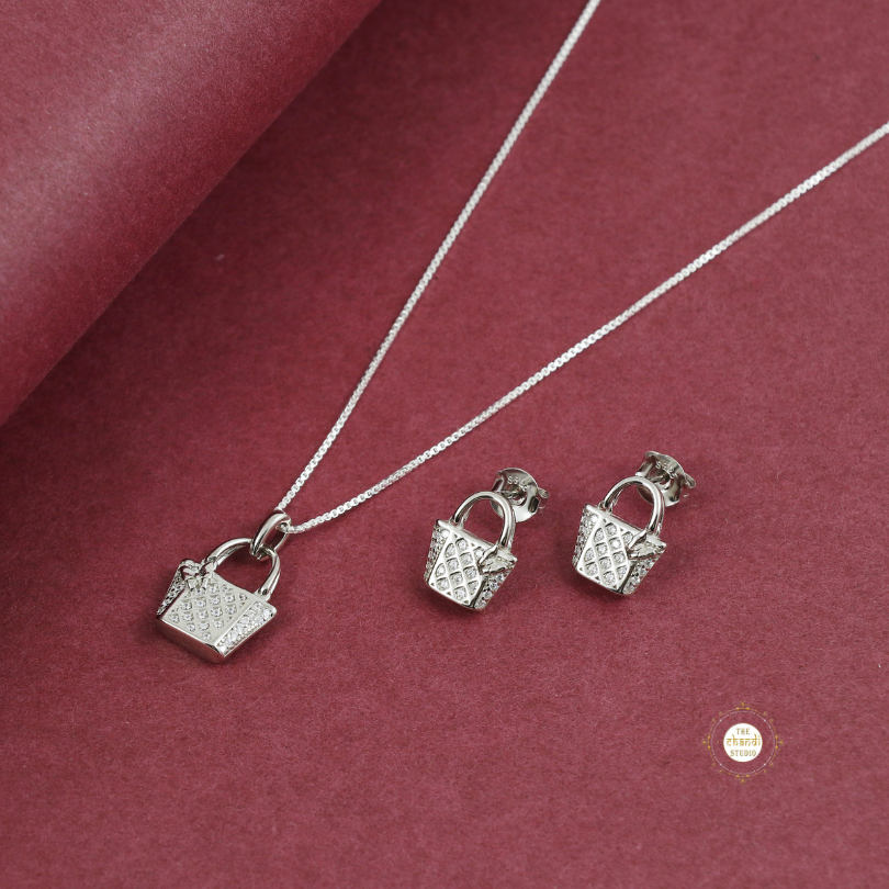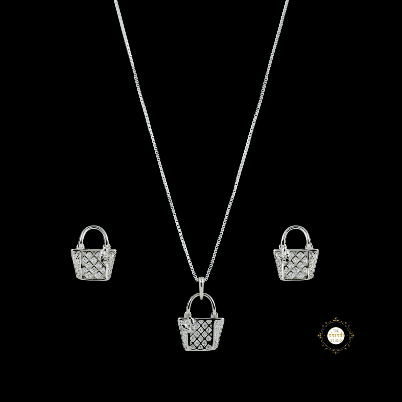 Introducing our exquisite new collection of Sparkling Glamour Bag Necklace Set crafted in sterling silver, each adorned with brilliantly cut Zircon stones. These necklaces are designed to celebrate love and self-love, making them a perfect choice for young adults and women embarking on their journeys of self-discovery. * Nickle free Rhodium Polish for better finish