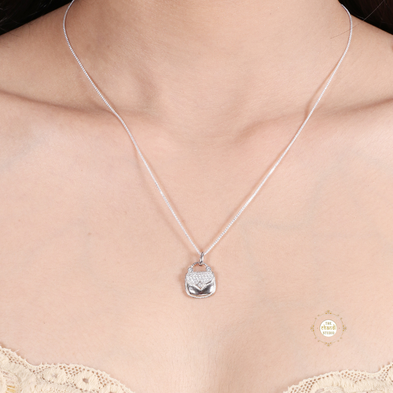 Introducing our exquisite new collection of Sparkling Glamour Bag Necklace Set crafted in sterling silver, each adorned with brilliantly cut Zircon stones. These necklaces are designed to celebrate love and self-love, making them a perfect choice for young adults and women embarking on their journeys of self-discovery. * Nickle free Rhodium Polish for better finish