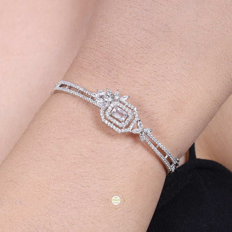 Introducing our Sparkling Princess Cuff, a dazzling statement piece from our collection of sparkling silver jewelry. Adorned with shimmering zircon and intricate detailing, this cuff exudes glamorous charm. * SIZE ADJUSTABLE             * Nickle free Rhodium Polish for better finish