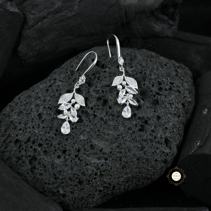 Elevate your elegance with our Sparkling Silver Earrings. Crafted from premium silver and adorned with dazzling zircon stones, these earrings offer a radiant shine perfect for any occasion. Nickle free Rhodium Polish for better finish.