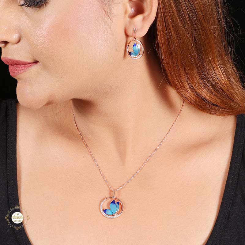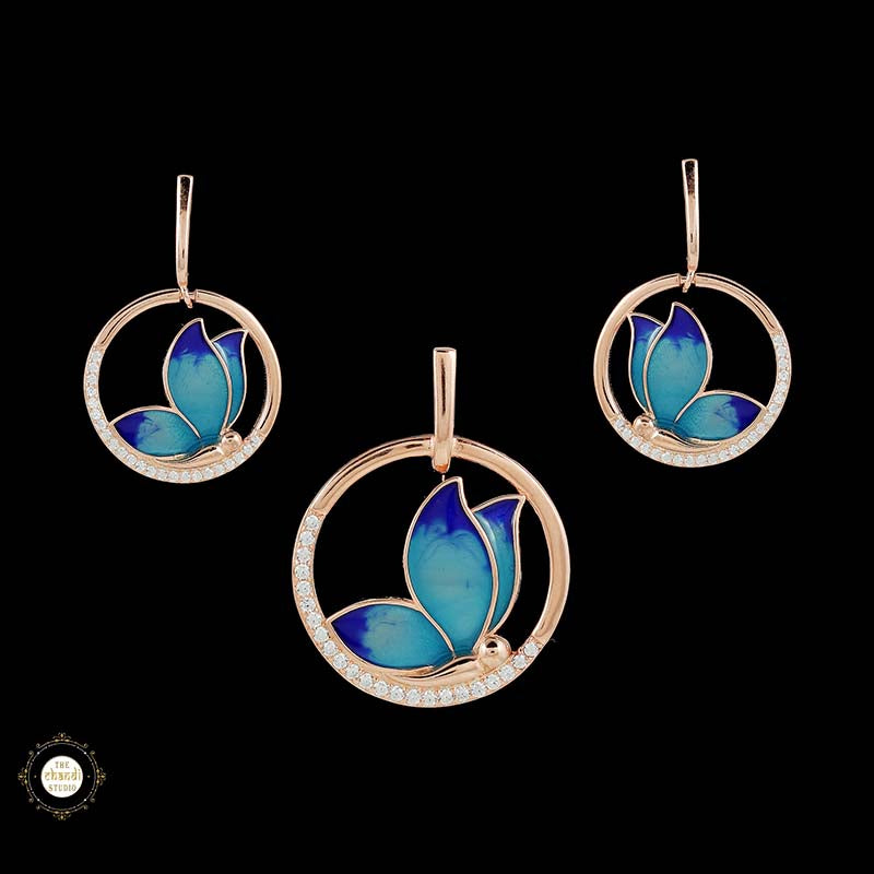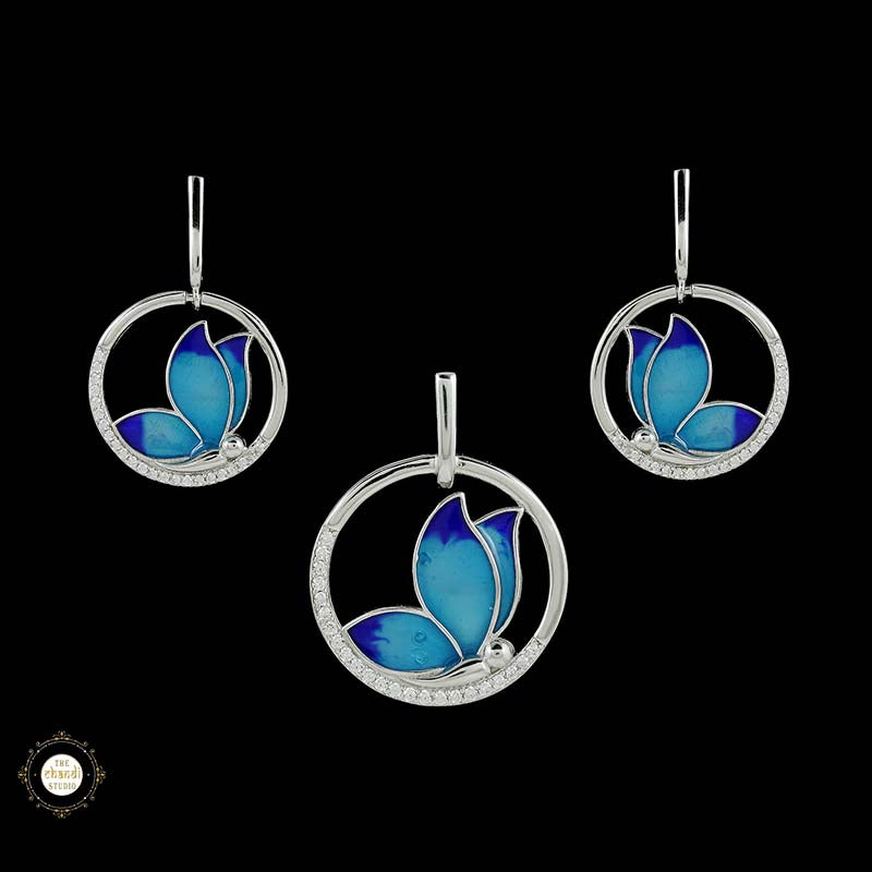 Sterling Silver Sparkling Silver Blue Wings Pendant Set