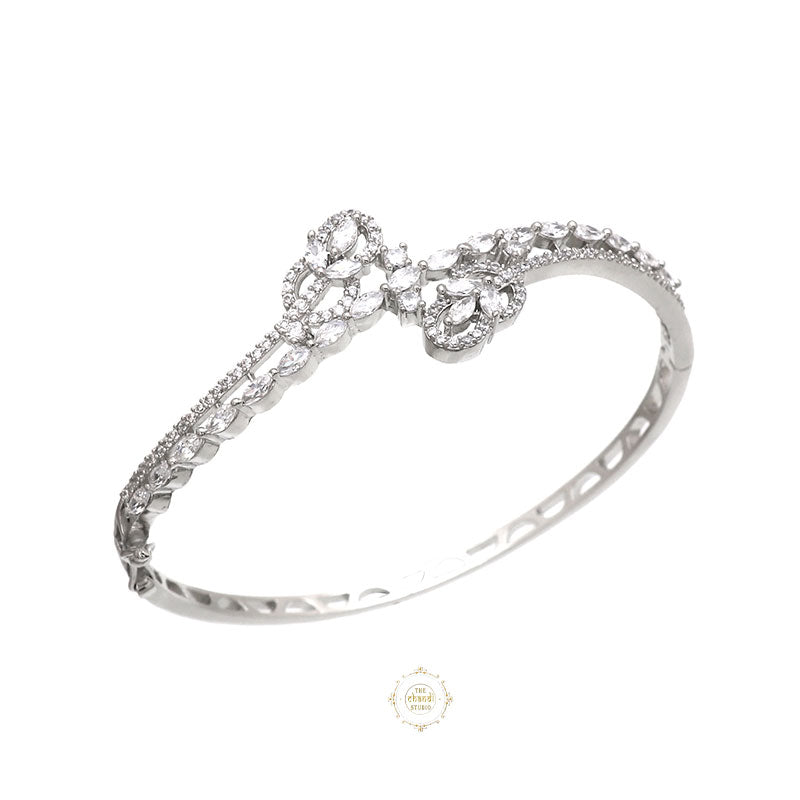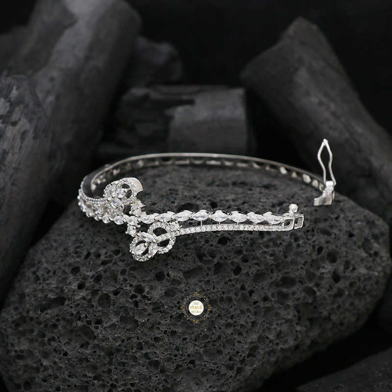 Embrace femininity with our Sparkling Silver Blushing Blossom Cuff, a delicate and enchanting piece from our blingy silver jewellery collection. Adorned with shimmering zircon in a floral design, this cuff captures the beauty of blooming blossoms. * SIZE ADJUSTABLE             * Nickle free Rhodium Polish for better finish