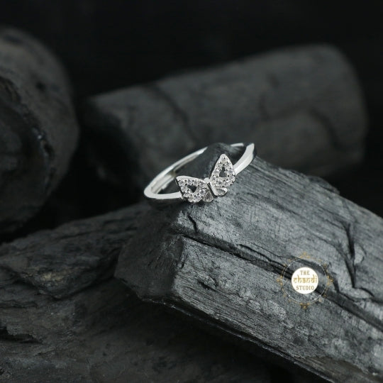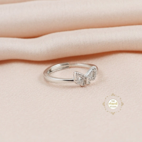 Add a playful touch to your style with the Sparkling Silver Bow Ring. Crafted from high-quality sterling silver, this charming ring features a delicate bow design, perfect for enhancing any outfit with elegance.