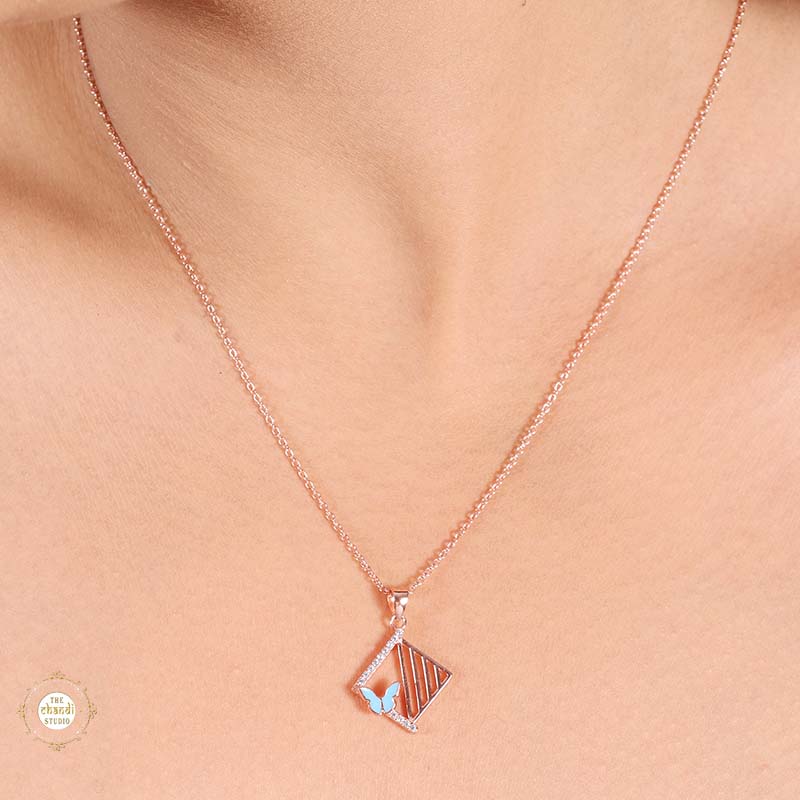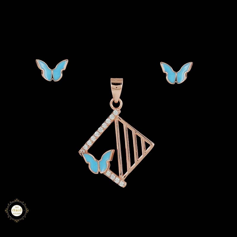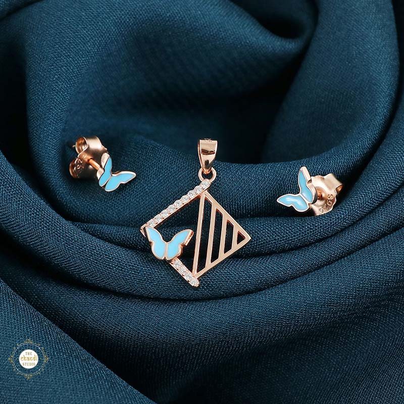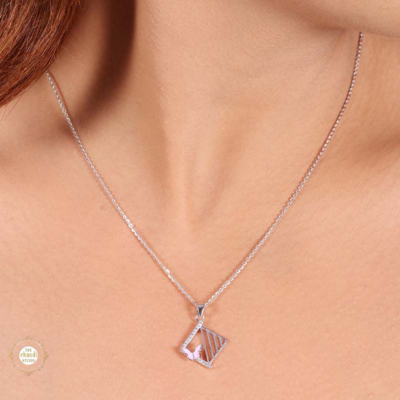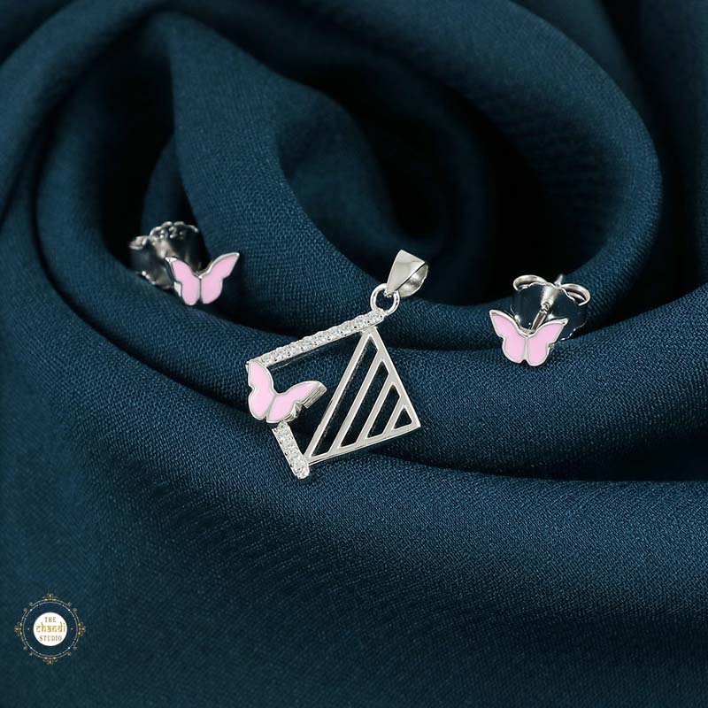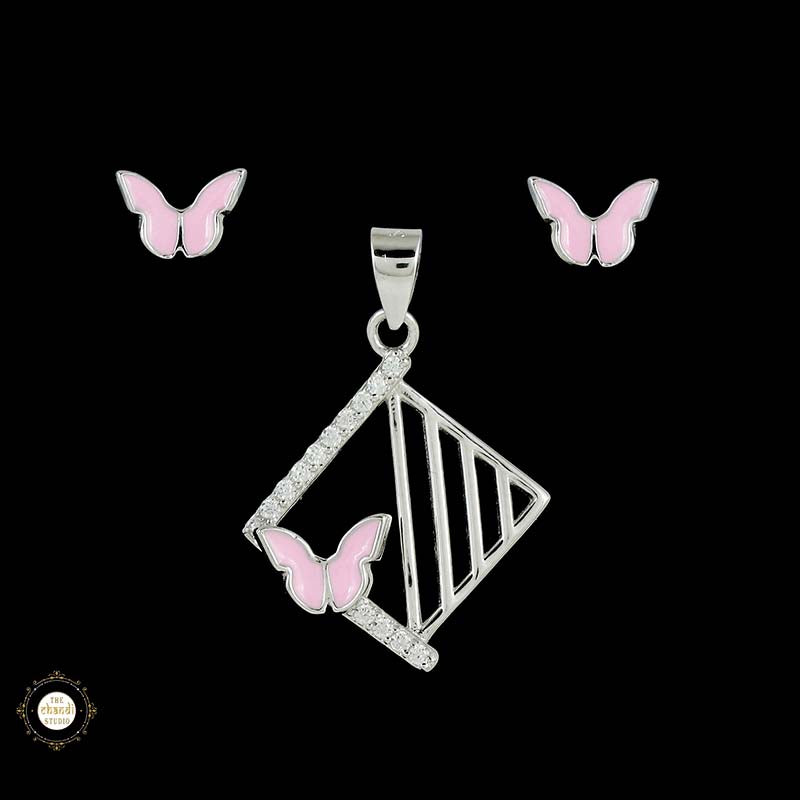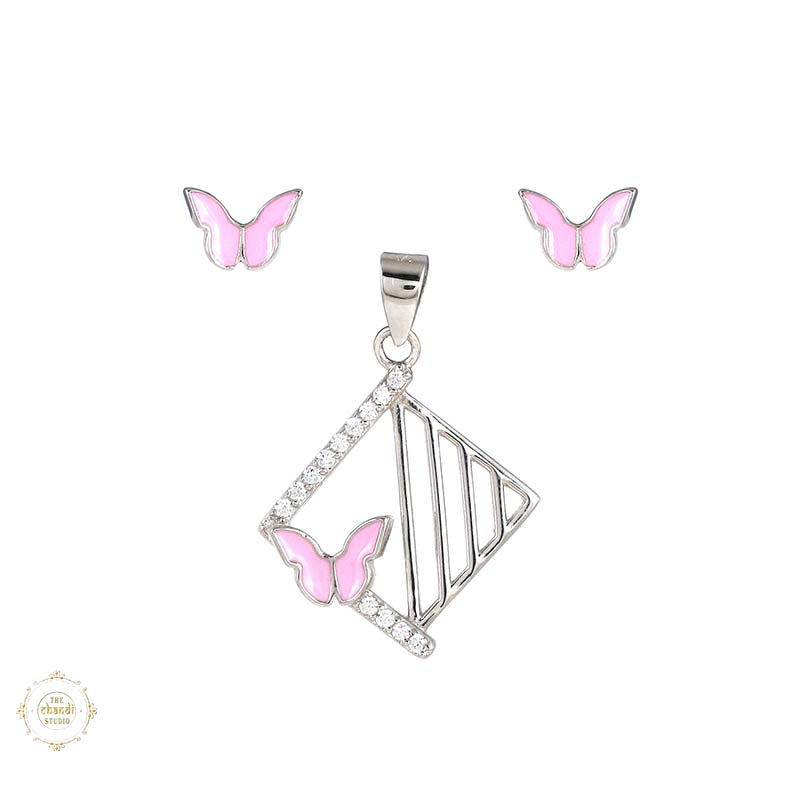 Sterling Silver Sparkling Silver Butterfly Grid Pendant Set