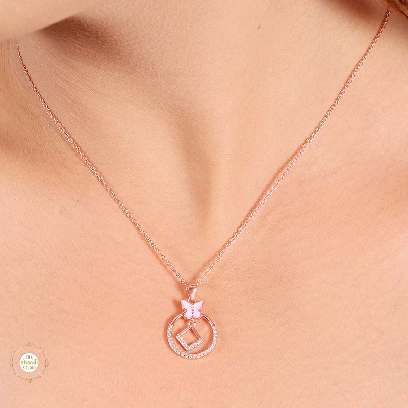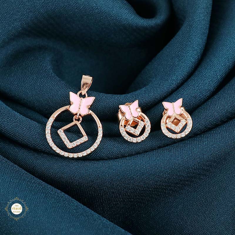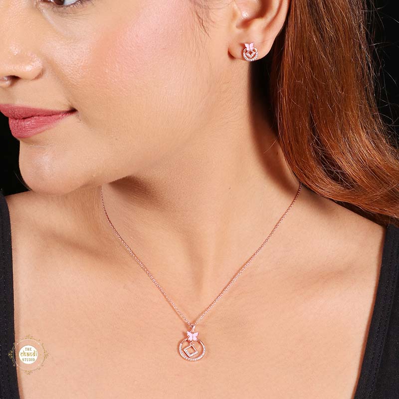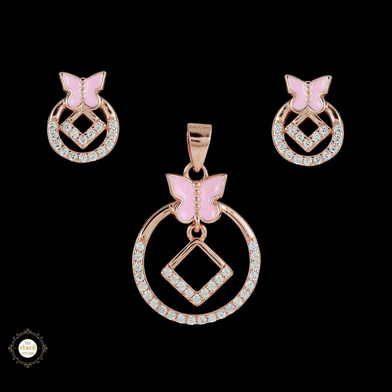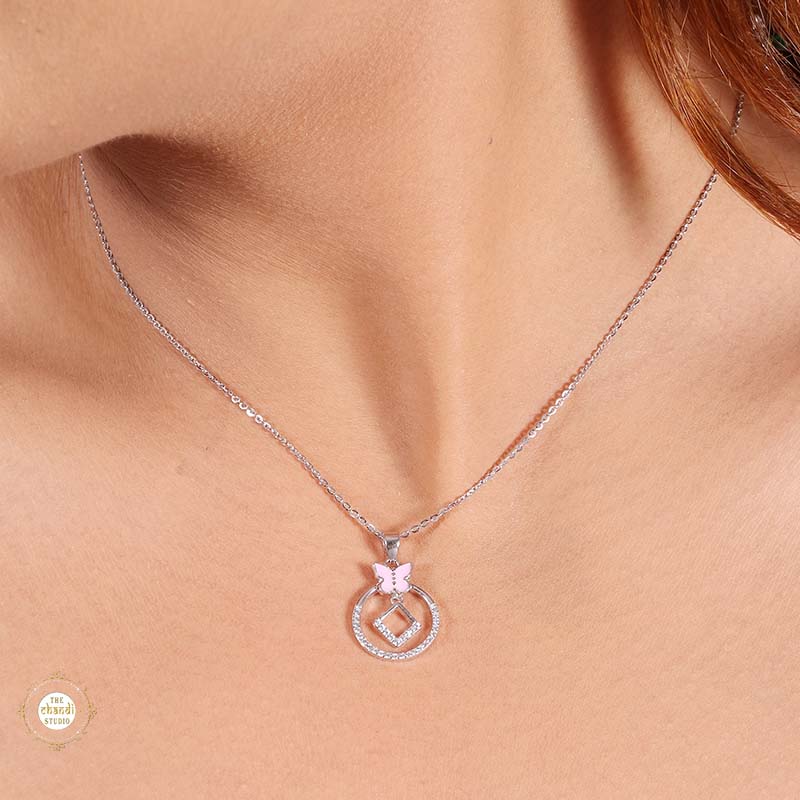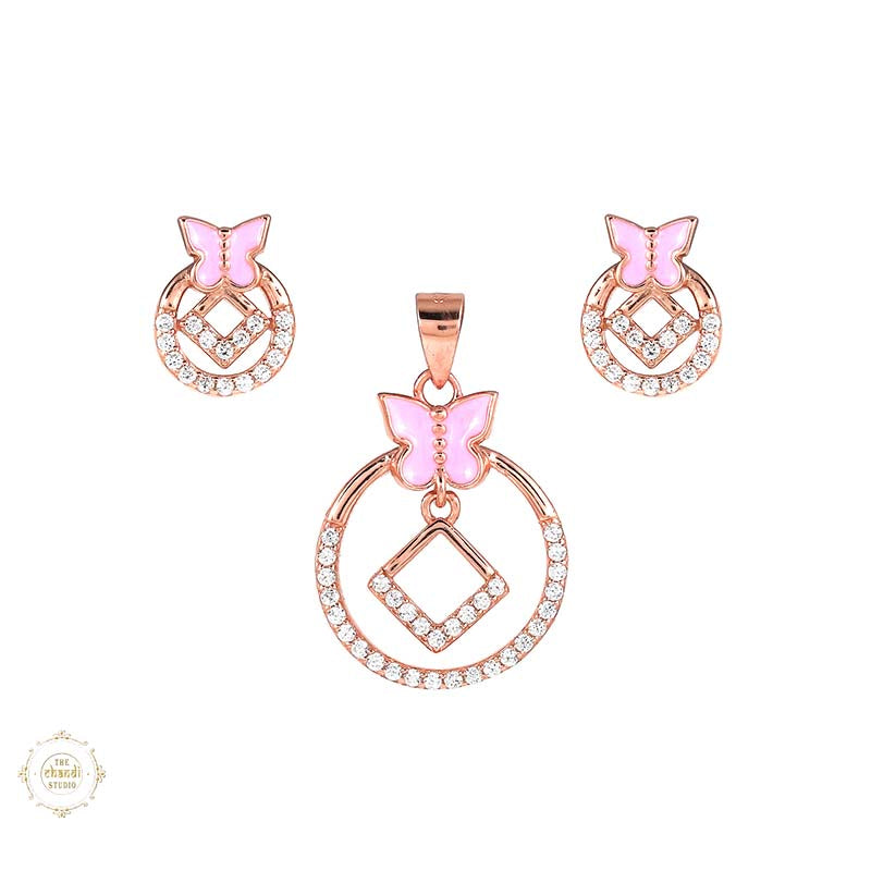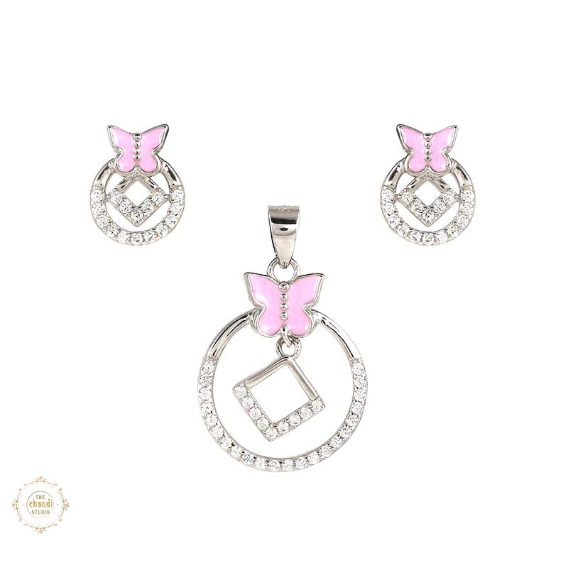 Sterling Silver Sparkling Silver Butterfly Halo Pendant Set