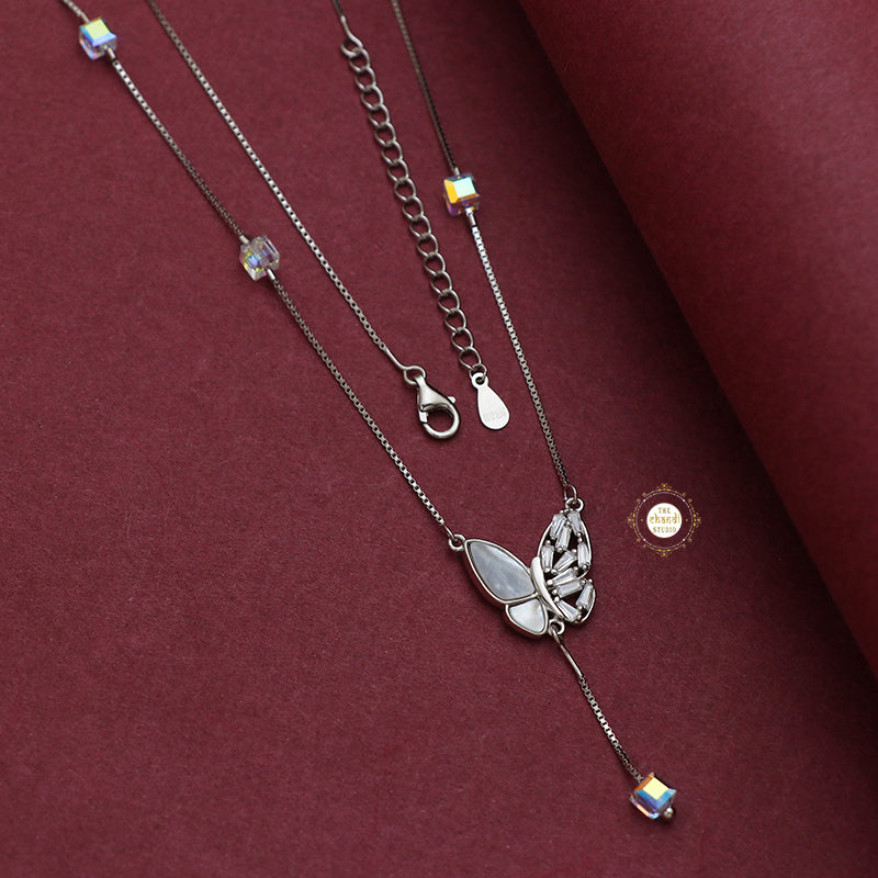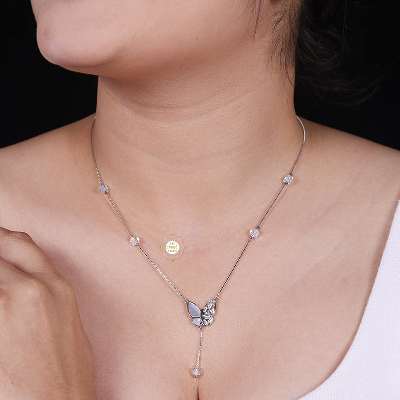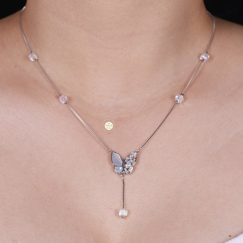 Introducing our enchanting Sparkling Silver Butterfly Necklace, a symbol of beauty, freedom, and transformation. Crafted with meticulous attention to detail, this necklace features a delicate butterfly pendant adorned with sparkling zircon stones, creating a dazzling effect that captures the essence of nature's grace. * Nickle free Rhodium Polish for better finish