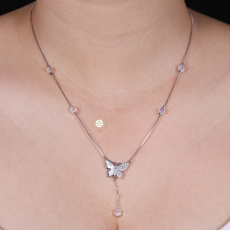 Introducing our enchanting Sparkling Silver Butterfly Necklace, a symbol of beauty, freedom, and transformation. Crafted with meticulous attention to detail, this necklace features a delicate butterfly pendant adorned with sparkling zircon stones, creating a dazzling effect that captures the essence of nature's grace. * Nickle free Rhodium Polish for better finish