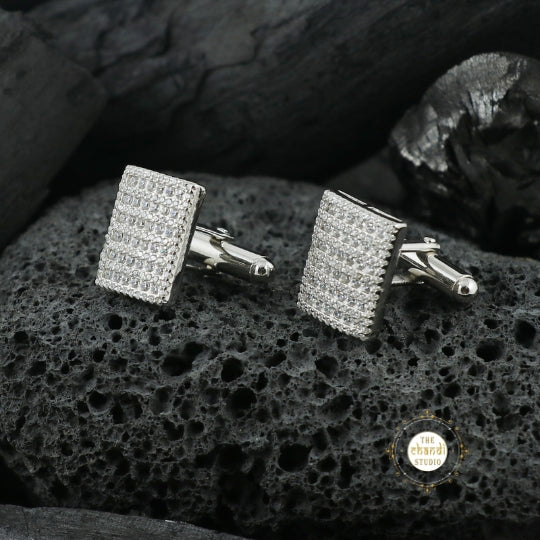 The Sparkling Silver Celestial Gleam Cufflinks are inspired by the brilliance of the night sky, featuring a sleek design with radiant accents. Elevate your formal attire with these luminous, celestial-inspired cufflinks.