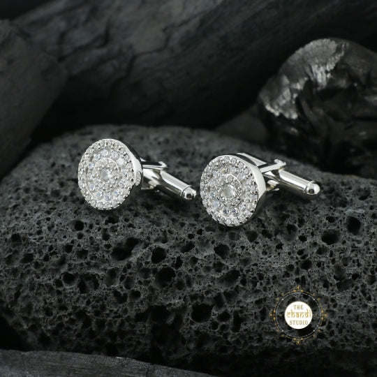 The Sparkling Silver Circle of Shine Cufflinks showcase a sleek circular design with a radiant shine. These elegant cufflinks add a polished touch to any formal ensemble, perfect for a distinguished look.