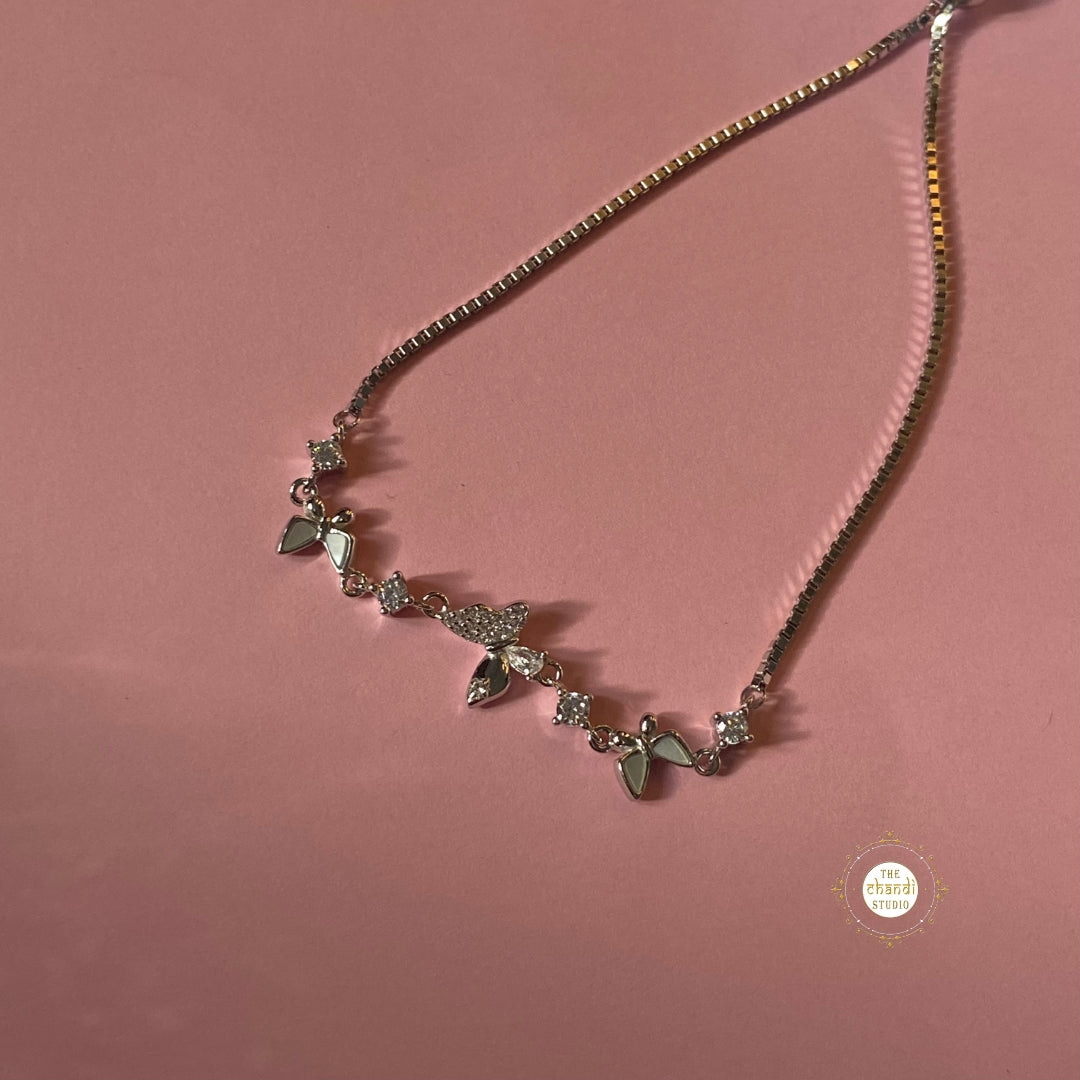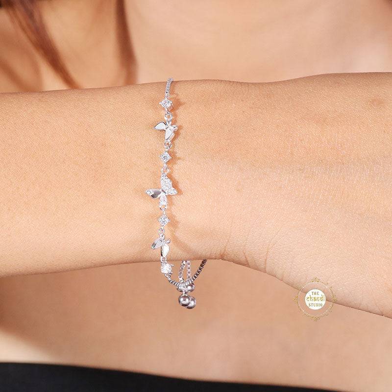 Enhance your daily style with the Sparkling Silver Whimsical Butterfly Bracelet. This timeless piece features high-quality sterling silver, offering a subtle sparkle that complements any outfit for effortless elegance every day.