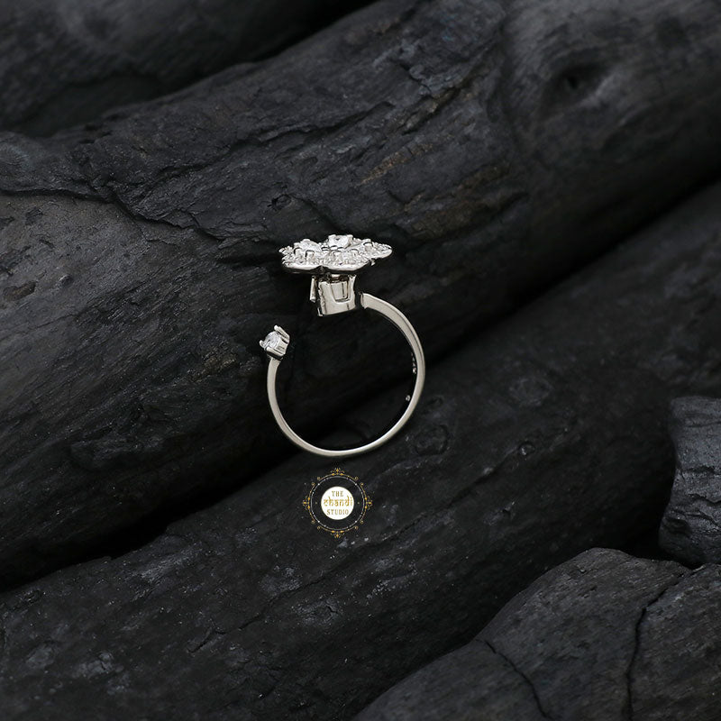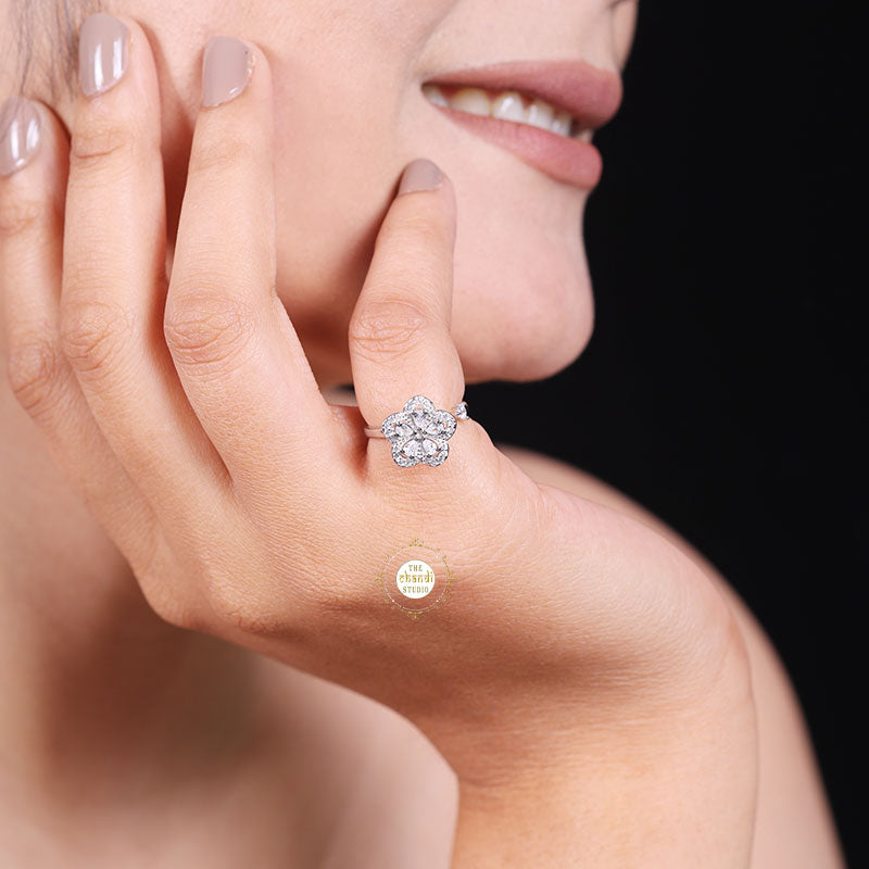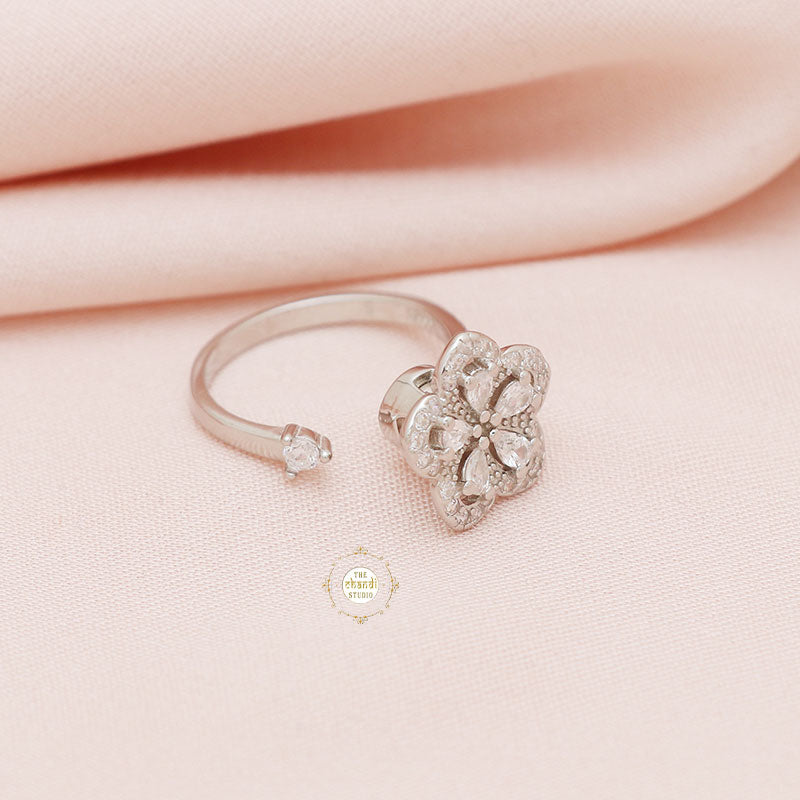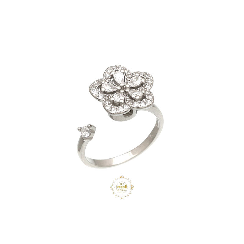 This exquisite ring features a delicate floral motif crafted with precision and adorned with sparkling zircons, adding a touch of glamour and sophistication to any ensemble. * SIZE ADJUSTABLE             * Nickle free Rhodium Polish for better finish