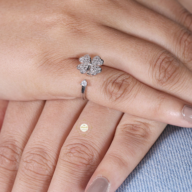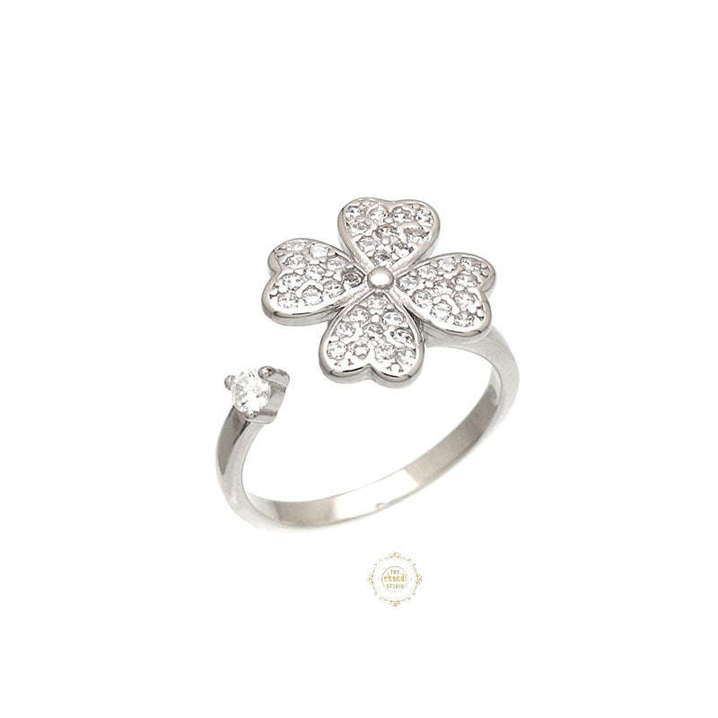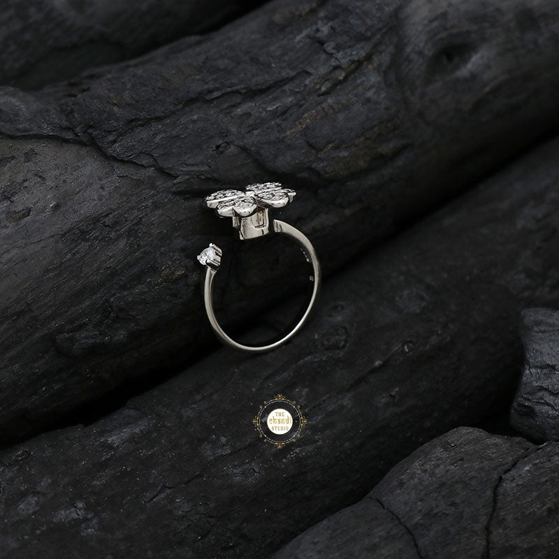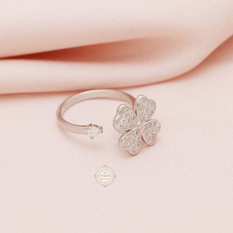 This exquisite ring features a delicate floral motif crafted with precision and adorned with sparkling zircons, adding a touch of glamour and sophistication to any ensemble. * SIZE ADJUSTABLE * Nickle free Rhodium Polish for better finish
