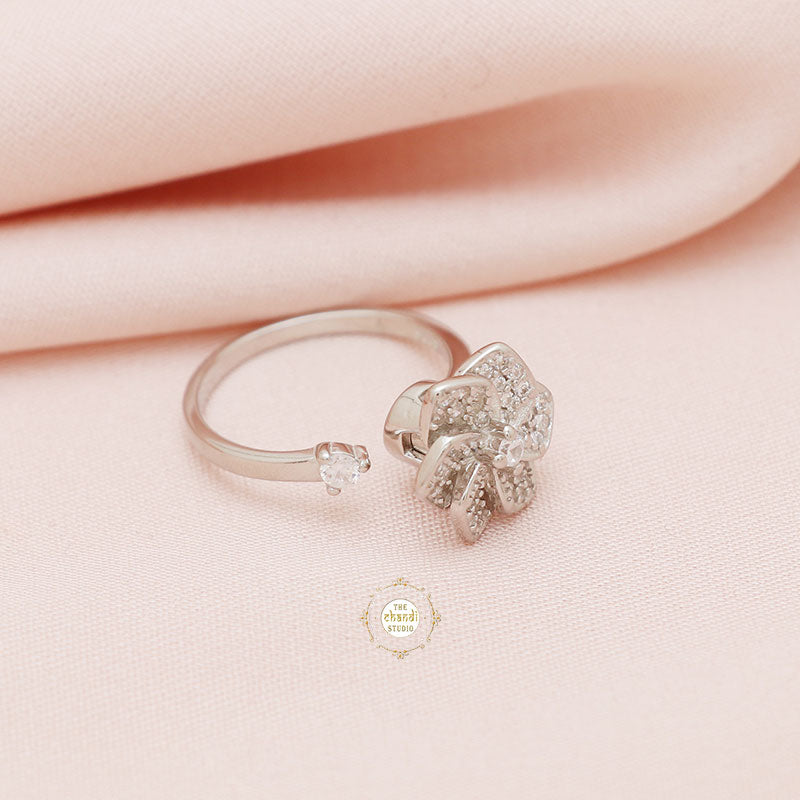 This exquisite ring features a delicate floral motif crafted with precision and adorned with sparkling zircons, adding a touch of glamour and sophistication to any ensemble. * SIZE ADJUSTABLE             * Nickle free Rhodium Polish for better finish