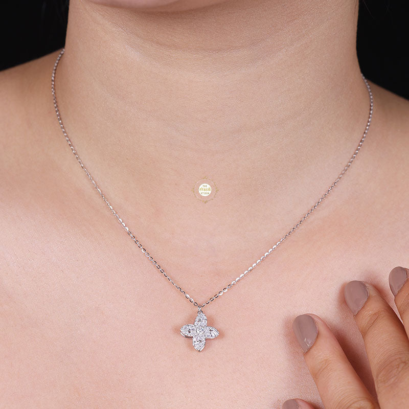Introducing our delightful Sparkling Silver Daisy Necklace, a charming piece that radiates with the beauty of nature. This exquisite necklace features a stunning design adorned with shimmering zircon stones arranged in the shape of daisies, evoking the freshness and joy of a blooming garden. * Nickle free Rhodium Polish for better finish